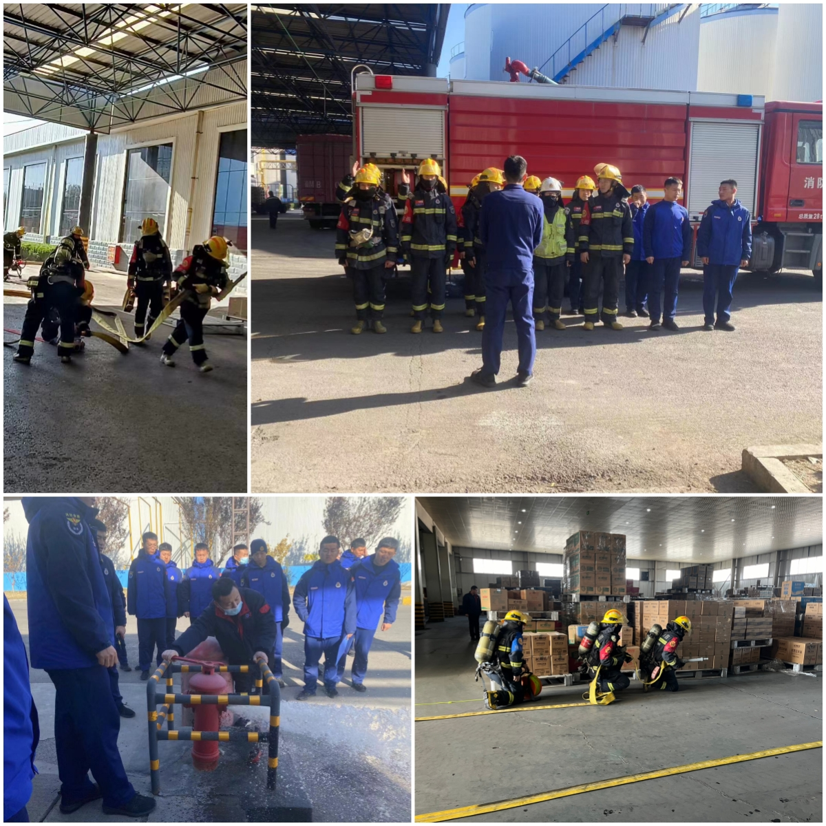 演練前,公司安全負(fù)責(zé)人向參訓(xùn)官兵介紹了公司的重點(diǎn)防火部位、現(xiàn)有消防設(shè)施和器材、生產(chǎn)單元分布等企業(yè)安全信息。隨后,在救援隊(duì)長的指揮下,參訓(xùn)官兵在包裝一倉庫門口集合,隨著開始指令的發(fā)出,迅速按照救援流程開始救援,根據(jù)職責(zé)分工,前后緊密配合,迅速到達(dá)假設(shè)“火情”位置開展撲救,整個演練流程有條不紊,做到熟練、快速、準(zhǔn)確。