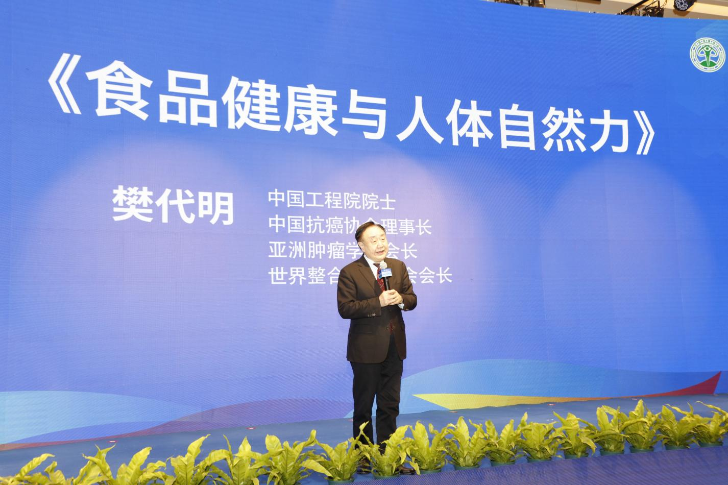 中國(guó)工程院院士、中國(guó)抗癌協(xié)會(huì)理事長(zhǎng)、亞洲腫瘤學(xué)會(huì)會(huì)長(zhǎng)、世界整合腫瘤協(xié)會(huì)會(huì)長(zhǎng)樊代明做《食品健康與人體自然力》主題分享