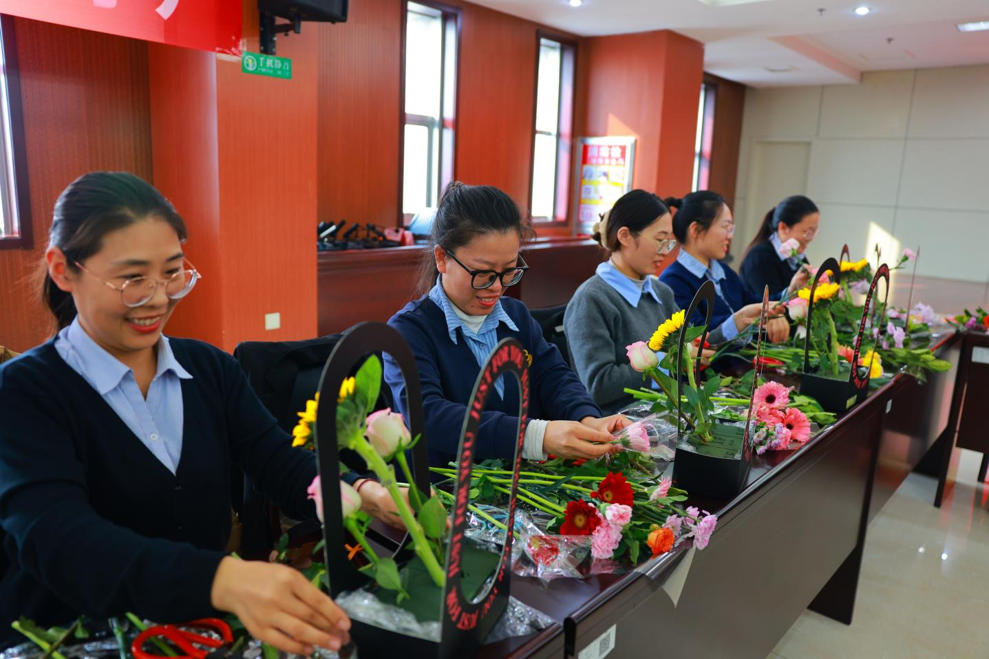 活動(dòng)現(xiàn)場,專業(yè)花藝?yán)蠋煘榇蠹以敿?xì)講解了花卉知識(shí)、插花技巧和藝術(shù)構(gòu)圖。女員工們聽得津津有味,從花材的選擇與處理,到色彩搭配和造型設(shè)計(jì),不時(shí)提出問題,與花藝師積極互動(dòng)。