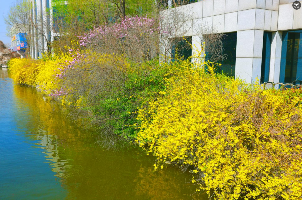 迎春花輕拂水面,描畫春痕
