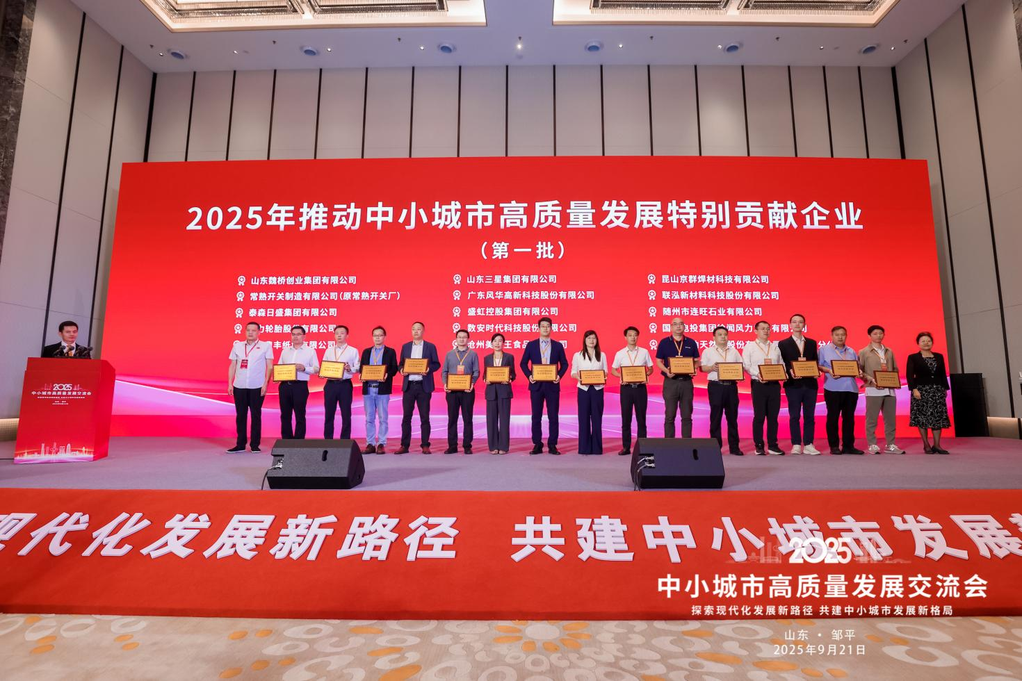 9月20日—21日,2025中小城市高質(zhì)量發(fā)展交流會在山東鄒平舉行,本屆交流會以“探索現(xiàn)代化發(fā)展新路徑 共建中小城市發(fā)展新格局”為主題,來自全國各地的百強縣區(qū)、千強鎮(zhèn)代表以及知名專家學者和企業(yè)家代表齊聚一堂,共同探討中小城市高質(zhì)量發(fā)展之路。山東三星集團作為優(yōu)秀企業(yè)代表,應邀參會并作交流發(fā)言。