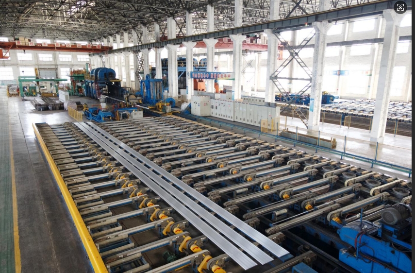 擠壓機(jī)臺(tái)全速運(yùn)轉(zhuǎn),型材淬煉成型