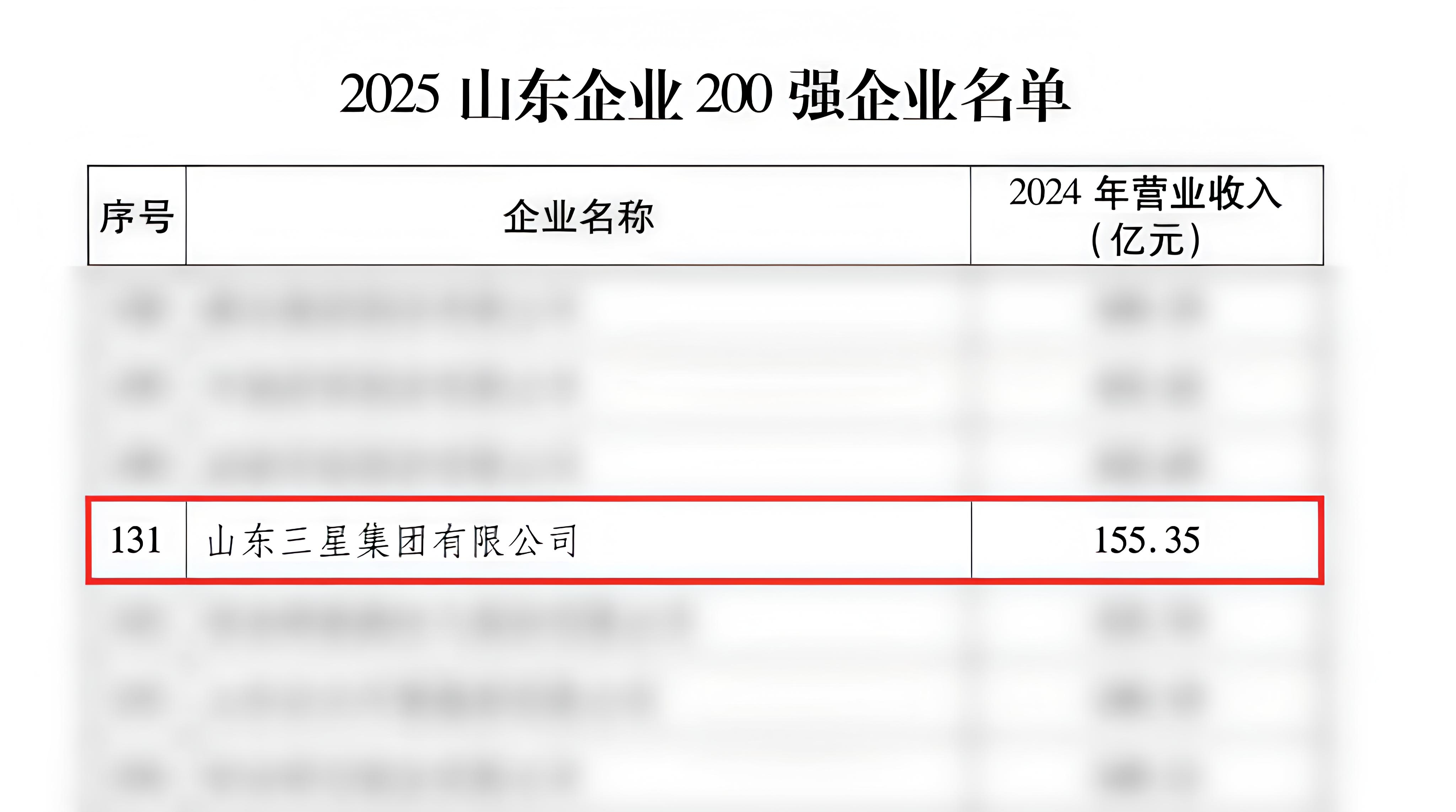 近日,山東省企業(yè)聯(lián)合會(huì)、山東省企業(yè)家協(xié)會(huì)正式發(fā)布2025山東企業(yè)200強(qiáng)榜單。山東三星集團(tuán)憑借雄厚的產(chǎn)業(yè)根基、持續(xù)的創(chuàng)新動(dòng)能與顯著的高質(zhì)量發(fā)展實(shí)效,入選榜單。