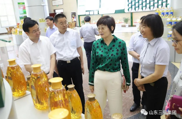 于衍霞一行走進(jìn)山東三星集團(tuán)長(zhǎng)壽花食品展廳、玉米油智能化灌裝包裝生產(chǎn)車間,詳細(xì)了解了企業(yè)高端糧油產(chǎn)業(yè)發(fā)展情況及戰(zhàn)略規(guī)劃,品鑒了長(zhǎng)壽花濃香玉米油、醬香鮮醬油等健康廚房產(chǎn)品,深入探討了高端糧油標(biāo)準(zhǔn)體系建立健全事宜,對(duì)山東三星集團(tuán)在引領(lǐng)玉米油行業(yè)標(biāo)準(zhǔn)化生產(chǎn)、推動(dòng)高端糧油品牌化運(yùn)營(yíng)等領(lǐng)域所做出的貢獻(xiàn)表示認(rèn)可,對(duì)企業(yè)長(zhǎng)期以來(lái)科技興糧、品質(zhì)興糧、品牌強(qiáng)糧的發(fā)展理念表示高度贊賞。