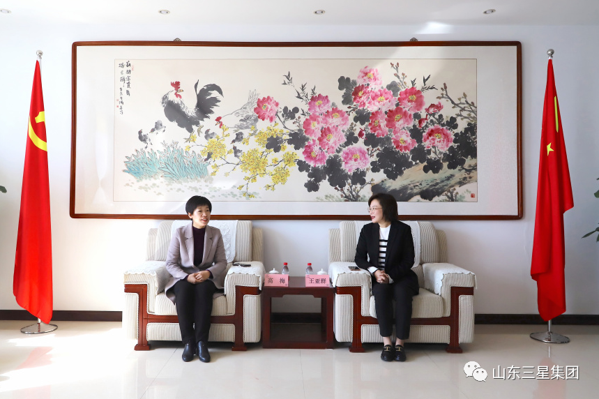 3月2日,“三八”國際勞動(dòng)?jì)D女節(jié)來臨之際,濱州市婦聯(lián)黨組書記、主席高梅,市婦女兒童事業(yè)發(fā)展中心副主任孔德芳一行來到山東三星集團(tuán),看望慰問集團(tuán)董事長、總裁王亞群及長壽花食品技術(shù)總監(jiān)、高級工程師王月華,并代表市委市政府向她們致以節(jié)日祝福和誠摯問候。