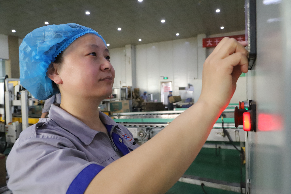 在包裝車間13年的工作生涯中,宋曉倩學(xué)習并實操了長壽花外包裝間的所有崗位,從第一份工作開箱起步,她就憑借沉穩(wěn)細心,用同崗位的高開箱和低損耗率,得到了車間領(lǐng)導(dǎo)和同事的肯定。隨著包裝設(shè)備的升級,加之多年的工作歷練,她不但能熟練操作設(shè)備,遇有突發(fā)情況也能沉著應(yīng)對、高效解決。封箱與碼垛都是生產(chǎn)線的最后崗位,必須要收好尾,更不能拖后腿。記得有一次轉(zhuǎn)產(chǎn)時,面對碼垛機程序故障可能導(dǎo)致滿垛傾倒危險時,宋曉倩憑借多年的實操經(jīng)驗,手動程序順利解決,從發(fā)現(xiàn)問題到恢復(fù)正常工作只用了5分鐘。