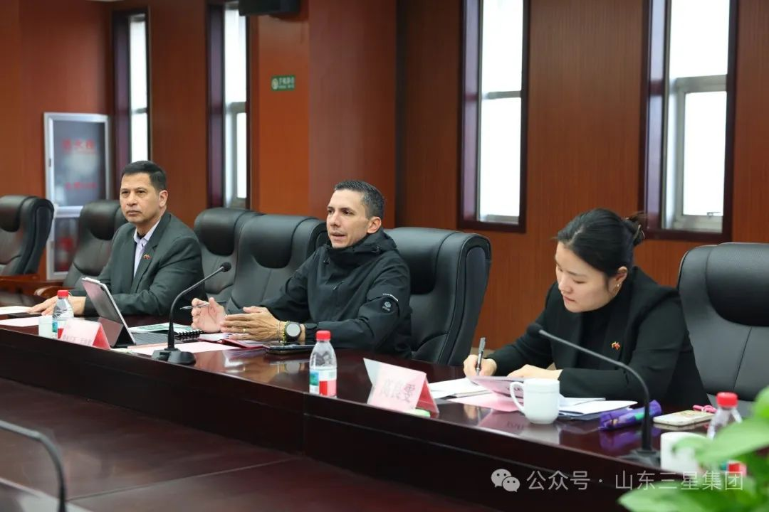 3月11日,委內瑞拉Diana 食品公司總裁費利克斯·羅梅羅一行來山東三星集團考察合作。濱州市外辦黨組成員、副主任蘇魯彬,濱州市外辦二級主任科員趙陽,鄒平市政府辦公室外事股長袁鵬陪同活動,機械公司董事長王啟鋼,集團國際貿易公司總經理畢延峰接待考察團一行。