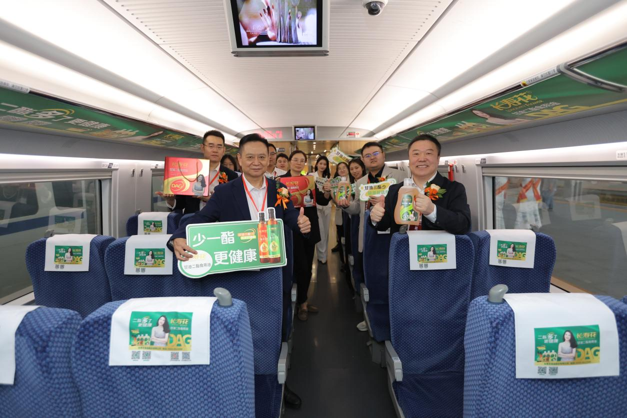 在熱烈的掌聲中,與會(huì)領(lǐng)導(dǎo)嘉賓共同為列車首發(fā)剪彩。這場(chǎng)獨(dú)具匠心的儀式,一端是長(zhǎng)壽花食品帶來(lái)的健康新選擇——甘油二酯食用油,以創(chuàng)新科技重新定義健康飲食;另一端則是中國(guó)高鐵,以世界矚目的“中國(guó)速度”展現(xiàn)國(guó)家工業(yè)實(shí)力。當(dāng)健康飲食的“科技力”遇上中國(guó)制造的“硬實(shí)力”,這不僅是一次品牌跨界,更是創(chuàng)新科技與國(guó)家戰(zhàn)略的深度融合,健康中國(guó)戰(zhàn)略正搭載新時(shí)代發(fā)展快車,全速駛向未來(lái)。