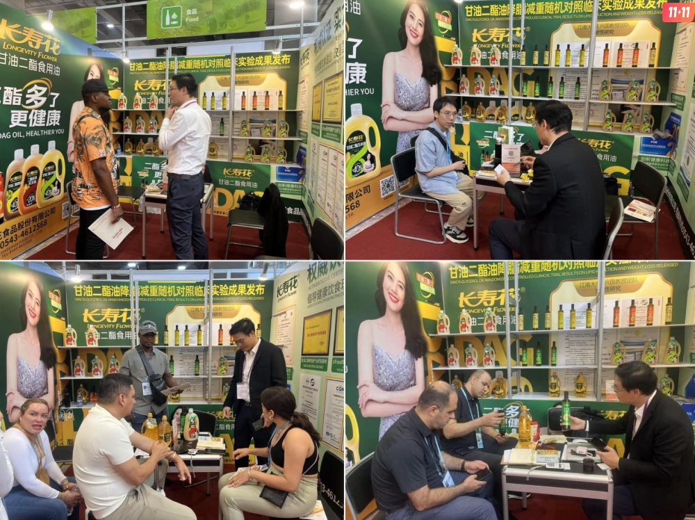 展會現(xiàn)場,工作人員圍繞長壽花甘油二酯油的產(chǎn)品優(yōu)勢、技術特性及未來健康食用油的消費趨勢等進行了系統(tǒng)化、多維度的闡述,助力海內(nèi)外合作伙伴精準把握健康消費升級背景下的市場機遇,受到與會客商的高度評價,并引發(fā)多輪深入洽談與合作意向。