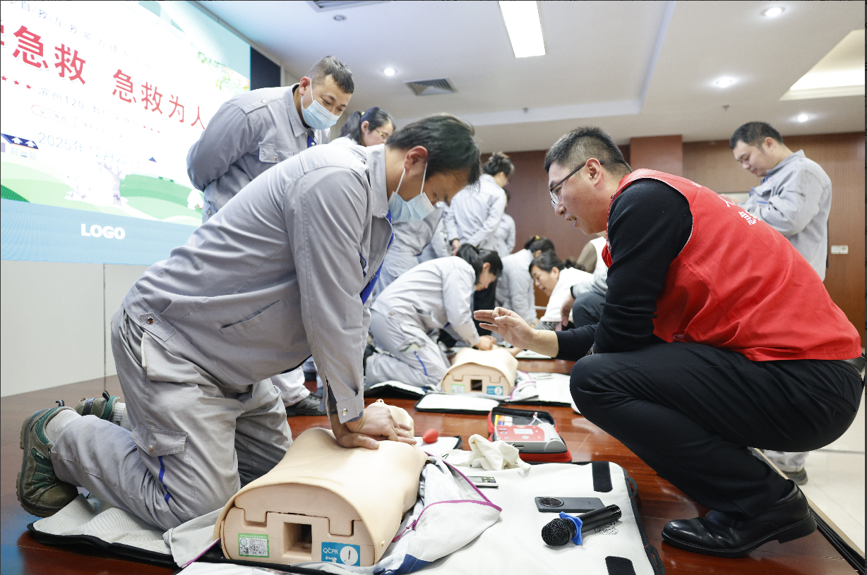 為確保參訓(xùn)員工真正掌握急救操作技巧,醫(yī)務(wù)人員現(xiàn)場指導(dǎo)大家進(jìn)行分組實操練習(xí),并耐心細(xì)致糾正員工急救姿勢、按壓頻率、力度控制等操作細(xì)節(jié),確保每一位員工都學(xué)會急救操作規(guī)范。集團(tuán)員工積極參與,親身體驗,現(xiàn)場氣氛熱烈而有序。大家紛紛表示,此次急救科普活動非常實用,學(xué)習(xí)到了許多寶貴的急救知識和應(yīng)急經(jīng)驗,切實增強(qiáng)了自身的應(yīng)急救助能力。